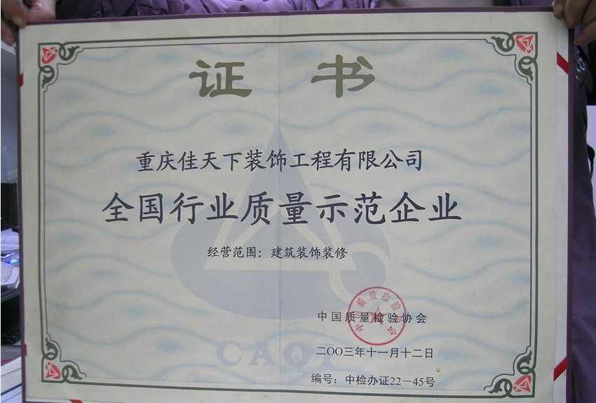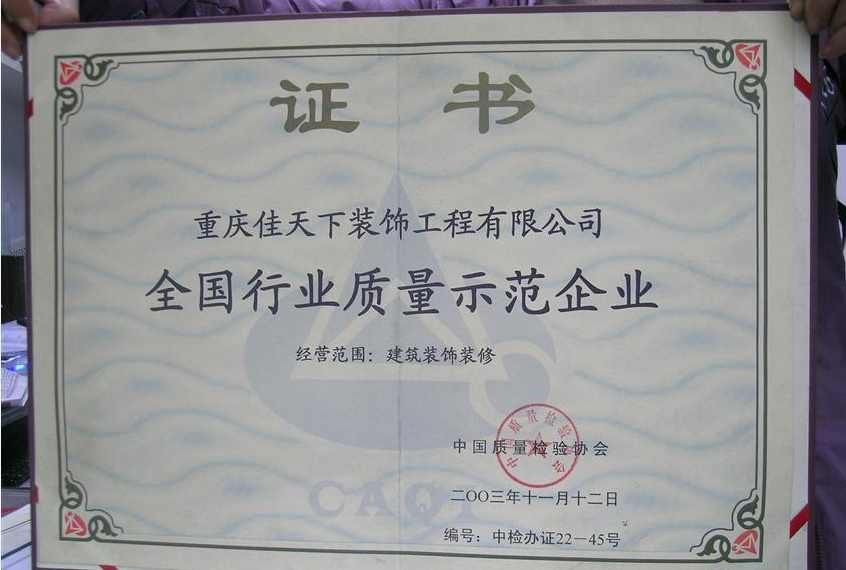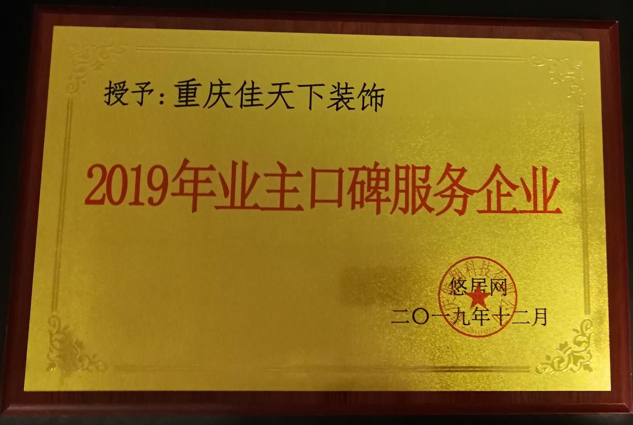 跬步千里,小流江海。在“誠信、進取、合作、創(chuàng)新”的企業(yè)理念基礎(chǔ)上,在“一心為你,精致到家”的企業(yè)信念下,佳天下裝飾先后獲得:全國行業(yè)質(zhì)量示范企業(yè)、重慶整裝協(xié)會會長單位、重慶市消費者信得過企業(yè)、重慶市建筑裝飾協(xié)會會員單位等80余項榮譽。