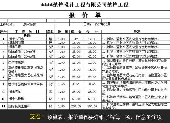 2. 輔料巧立名目 不要以為輔料對于裝潢不重要,往往你一不留神,裝潢公司又在輔料的價格中“坑”多一筆!對于業主頻跑市場對主材研究比較詳細,對輔料價格就不清楚了,裝潢公司就在此做文章!比如這里的拆除磚墻,本身人工費已經偏高了,輔料一項是根本不存在的。