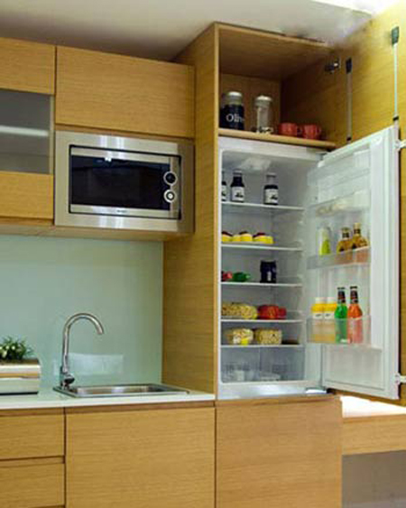CASE1:空間再開發 拓展收納容量,當整體櫥柜和各種電器都已入住廚房時,這里或者那里還是會有一些忽略到的空間閑置,對于放入一個角柜都困難的地方我們應該選擇體積較細長的格架或是量體定制收納柜。這種狹長進深深的儲物空間非常適合存放罐狀或瓶狀的物品。根據不同使用頻率,可把物品放置在不同高度的位置。