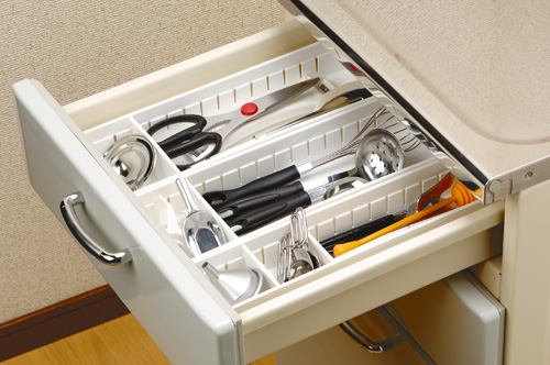 2、每個小抽屜都有“大肚量”,廚房中最多的柜子和抽屜,所以抽屜的空間自然是要好好利用。抽屜收納,最關鍵的是要有序排放。如果想讓抽屜有序收納,大家可以購買抽屜分割器,這在許多家居店里都可以買到,在部分五金商店也可以購買。你也可以購買一些價格比較低的餐具盤,上面一般都劃分好了放刀、叉、勺子的地方。抽屜收納最需要晉級的就是,不要把抽屜當做廢品收購站,把任何不需要的東西都往抽屜里扔,那樣基本就是廚房雜亂的開端。