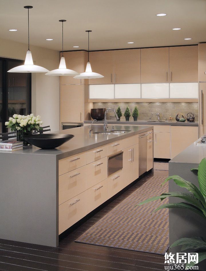 如果說你家的廚房只有一個(gè)光源,那么重慶房屋裝修小編相信你肯定曾有過這種類似的尷尬:在一個(gè)吸頂燈下淘米,但是即使眼睛是瞪得大大的,也總是會(huì)遺漏掉一些壞米沒有被清理出來。所以現(xiàn)代廚房中的燈光設(shè)計(jì)通常都是分為兩個(gè)層面,除了對(duì)整個(gè)廚房有個(gè)全局的照明之外,還會(huì)在洗滌區(qū)和操作臺(tái)的區(qū)域設(shè)置櫥柜專用射燈,這類射燈的光線適度,開關(guān)也方便,對(duì)在廚房做事提供了很大的便利。