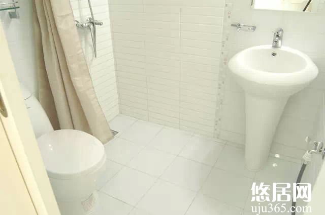 小衛浴間里沒有安淋浴房,想通過簡單的裝修讓空間變得更漂亮些??煽拷芈┑牡孛嫘逼伦龅貌粔颍看蜗赐暝璧孛嫔系姆e水總花很久才能流干凈。