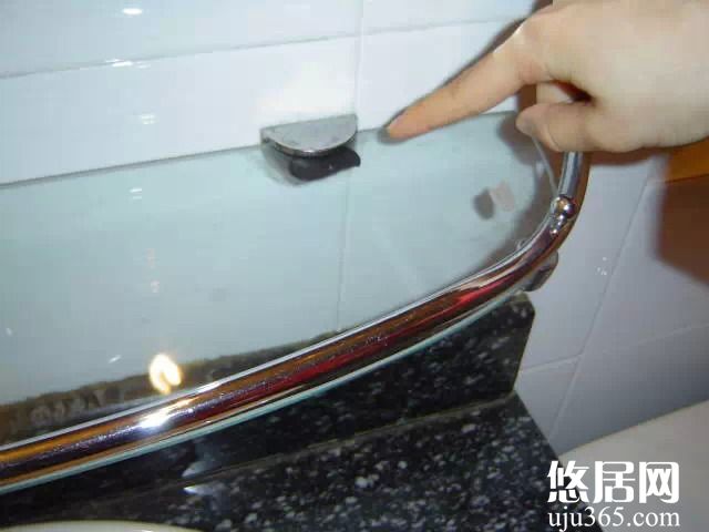 支撐玻璃架的五金件是在路邊的小店買的,低劣的質量無法支撐起厚重的玻璃,盡管業主還加了個墊片補救,但玻璃還是很難牢固,非常危險。