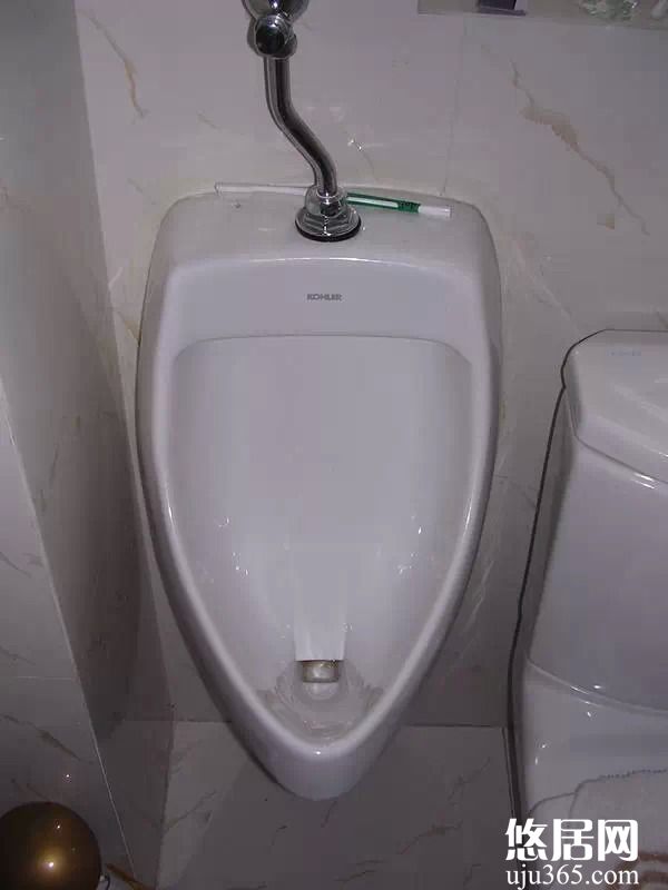 原先僅考慮要在此處安裝個小便池,但沒有具體測量便池的大小尺寸,如今安裝好以后才發現水管與便池的位置不一致,為了補救只能將水管彎曲。