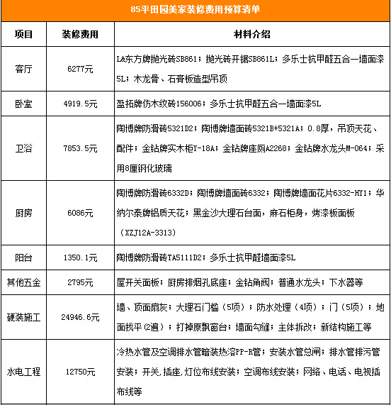 您家的裝修預(yù)算為11554