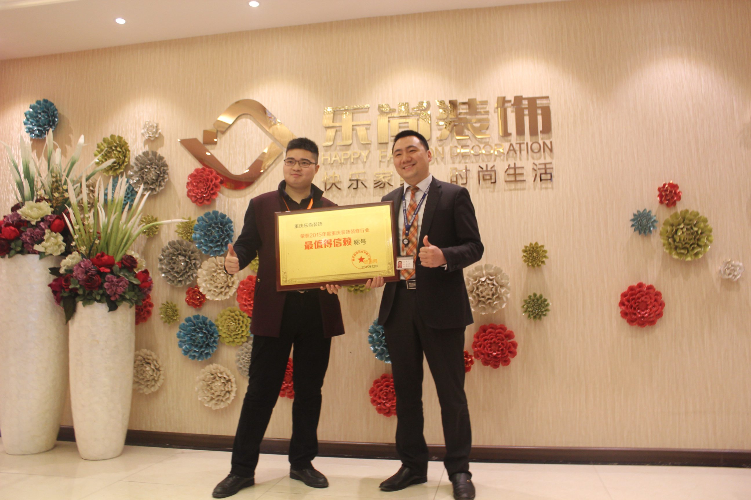 重慶樂尚裝飾榮獲悠居網2015年度值得信賴裝飾公司