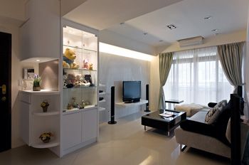 客廳大部分會擺放比較喜愛、價值較高的展示品,這時候可以在展示柜內留光源,借由打在展示品上的光源,讓收藏品呈現比較貴重的質感。而一般業主最擔心容易沾染灰塵的問題,可以使用清玻璃門片來達到防塵效果,當然也可以利用清玻璃做為層板,讓預留的光線由頂端透至最下緣,每一件展示品就能有晶瑩透亮的質感。
