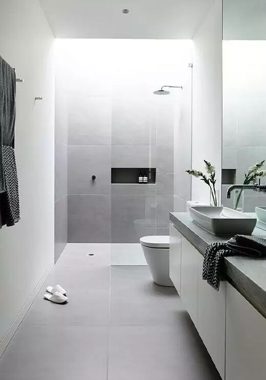 黑白衛浴間比較常見的是將黑色用于地板或天花板。衛浴間一般空間較小,墻面用純黑會比較壓抑。▼