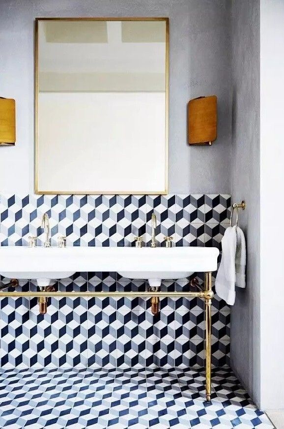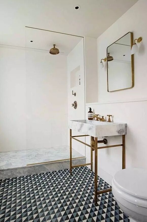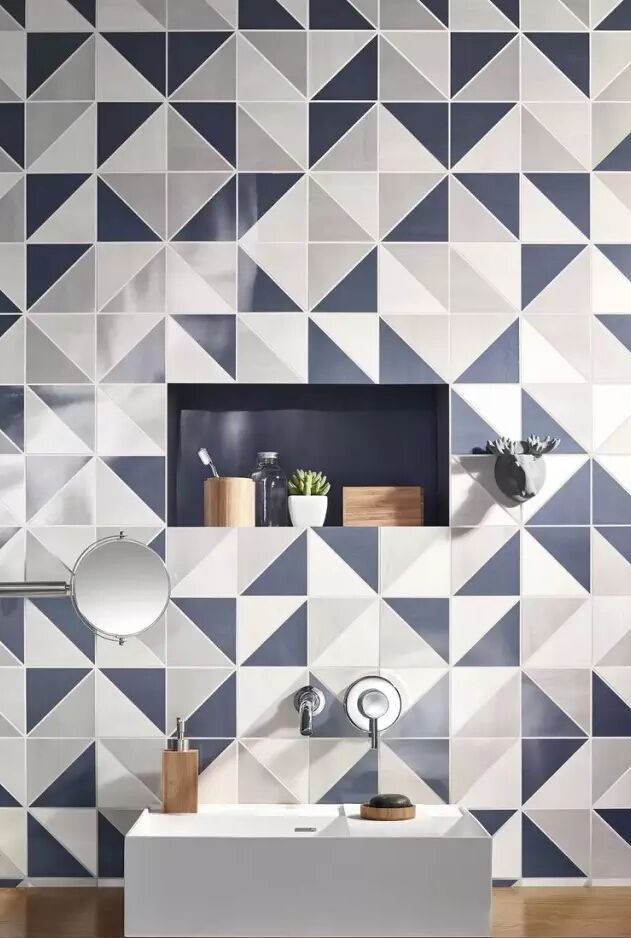 幾何紋瓷磚簡潔明快而富于設計感,也是衛浴瓷磚常用的選項。