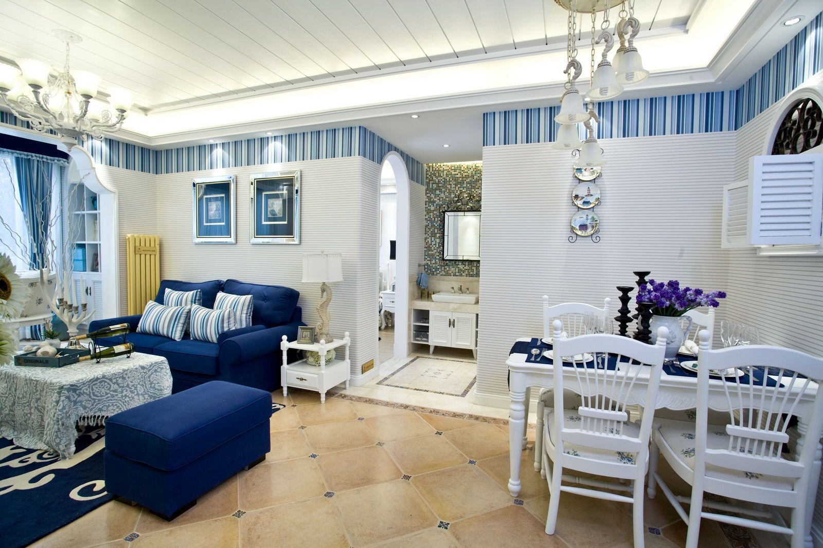與地中海風格在顏色的運用上的大膽相當,區別在于顏色種類的運用不同,畢竟追求的氛圍不同。多選擇純實木(常用白橡木)為骨架、外刷白漆,配以花花草草的面世軟墊,坐起來舒適而不失美觀。