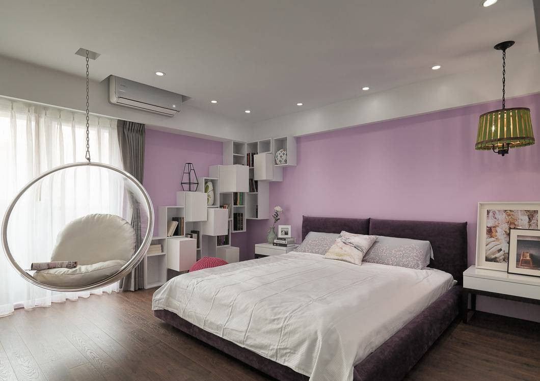 浪漫氣息里,格子柜體沿墻串場入貓跳臺機能,即使是睡眠時光,也可以讓女主人恣意的與愛貓互動。
