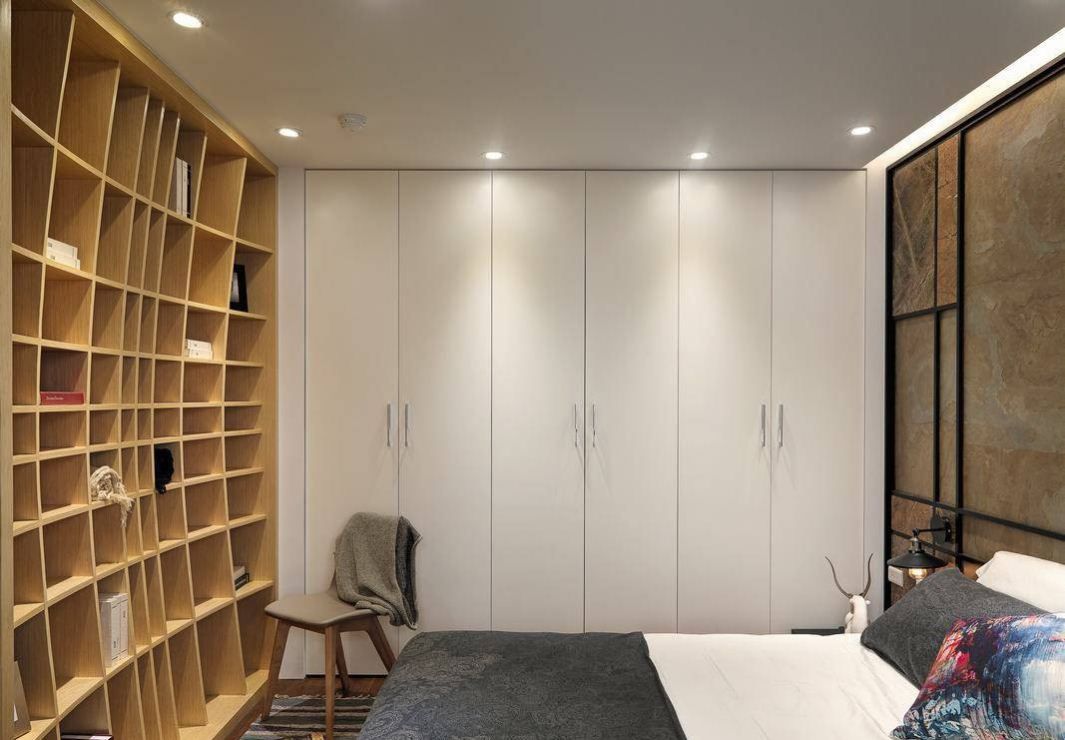 球形概念發展的書墻設計,搭配上陶烤質感衣柜,前衛著私密體驗。