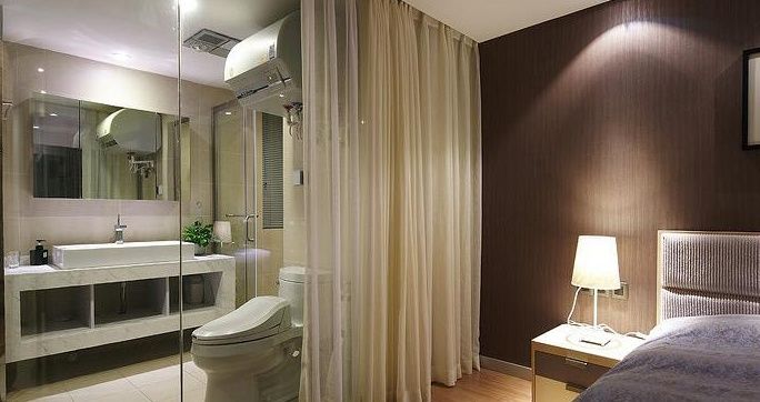 1.首先要確定你的臥室的私密性、通風(fēng)性、和采光度三個(gè)因素不容否認(rèn),主臥帶衛(wèi)生間很方便,但是與之而來的排氣性能是一個(gè)主要考慮的因素。玻璃隔斷有全隔斷半隔斷和混隔斷,一封到頂?shù)娜魯嗖粫?huì)泄露潮氣到主臥室,一般的半隔斷不采用,只是使用10~30公分的防水隔板當(dāng)?shù)鬃?防止水流到別處,混隔斷就是多種材料混搭的使用。