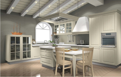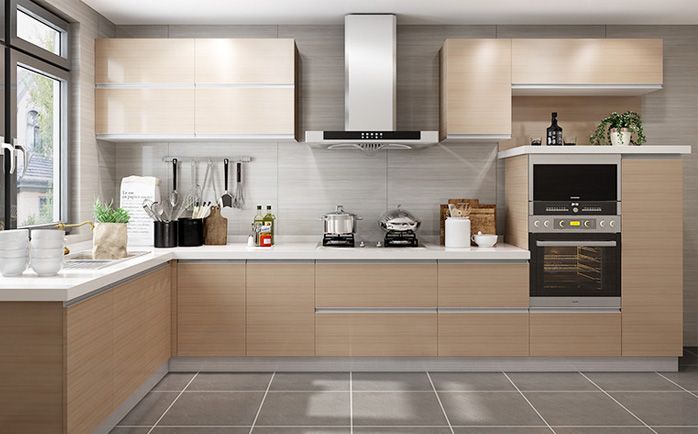 導讀:櫥柜是指廚房中存放廚具以及做飯操作的平臺。使用明度較高的色彩搭配,由五大件組成,柜體,門板,五金件,臺面,電器。