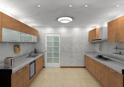 優點:它是一種使用很方便的格局,一般是用在面積中等的廚房或寬長型的空間內,由于櫥柜的凈寬最少在55厘米以上,加上走道的寬度,因此做這種布置時,廚房的開間凈空至少應該在180厘米以上,如果要使用比較舒適,則凈空最好能夠達到210厘米。