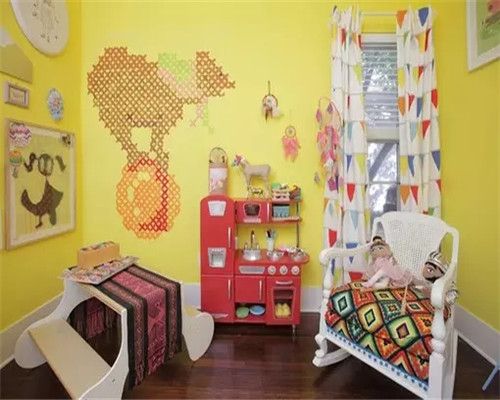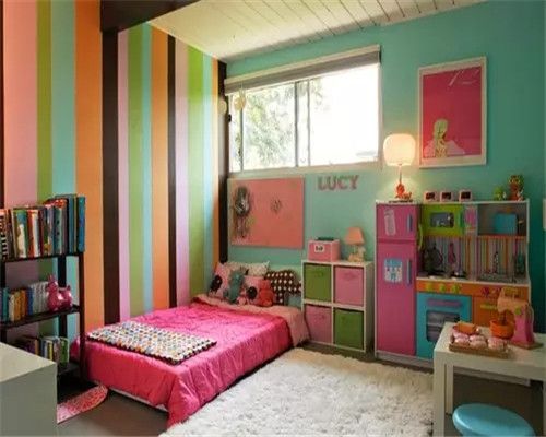 雖然兒童房的配色要明亮,但是顏色過于鮮亮不利于孩子的視力發(fā)育。盡量選啞光色系的壁紙。選購(gòu)準(zhǔn)備一些色卡,對(duì)看中的壁紙要拿到1米以外,看看逆光的效果。