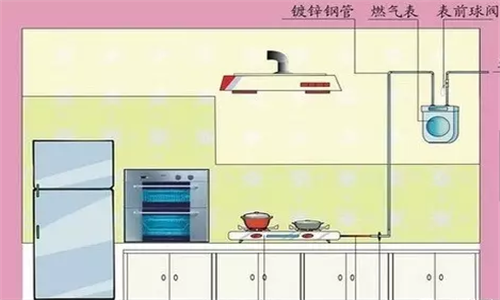 用吊櫥把管道遮蔽起來可以提高美觀,但是煤氣管道不能做暗管 ,煤氣表嚴禁移動!切記。