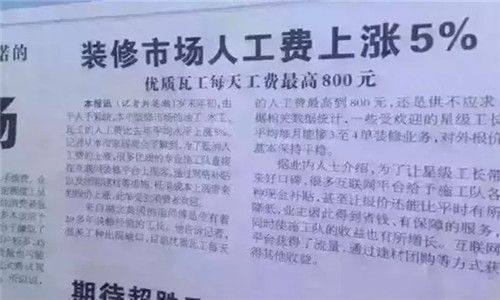 由于社會物價普漲,裝修工人實際生活成本增加,再加上裝修熟練工還比較緊缺,工資也跟著水漲船高,瓦工以前貼磚一般25-30元/平,現在瓦工貼磚能達到40-45元/平;油工、水電工、木工,平均日工資到250元至280元,此前為180元至200元;技術好的工人,還會在這個基礎上上浮15%甚至更多。