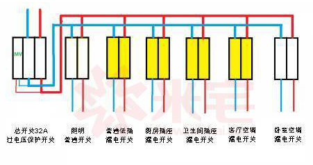 我家由于使用了燃氣熱水器,衛生間的漏電開關沒有選擇高靈敏的10mA的型號,照明回路和壁掛空調沒有選用漏電保護開關。該方案算是要求比較嚴格的配置了。
