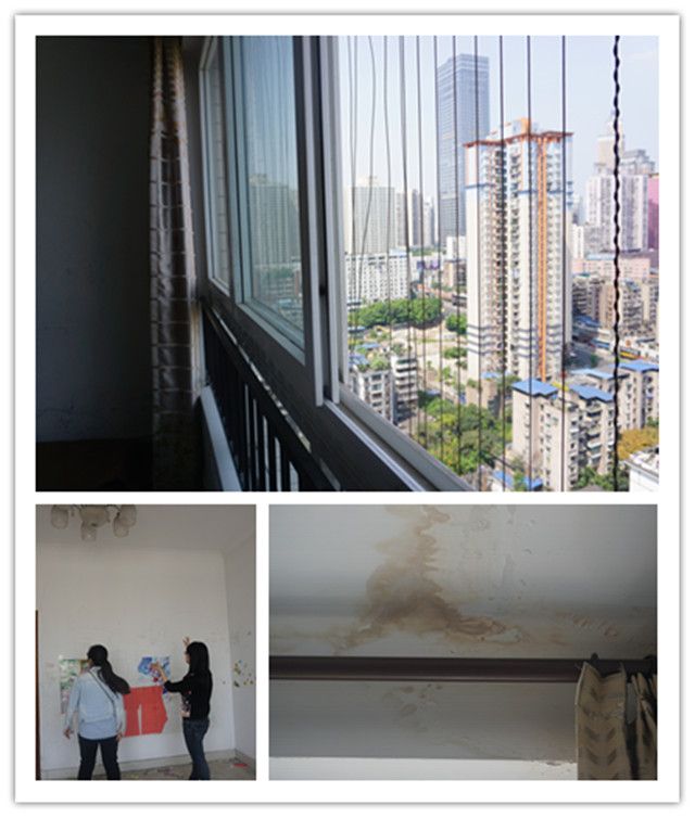 墻面也已經因為發潮泛黃起皮了,有的地方甚至還有裂縫。