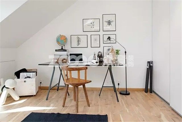 書房軟裝布置簡約舒適,用照片裝飾書桌的背景墻,為書房營造了溫馨舒適的空間氛圍,簡約的書桌椅更是既實用又能使整個空間開闊。