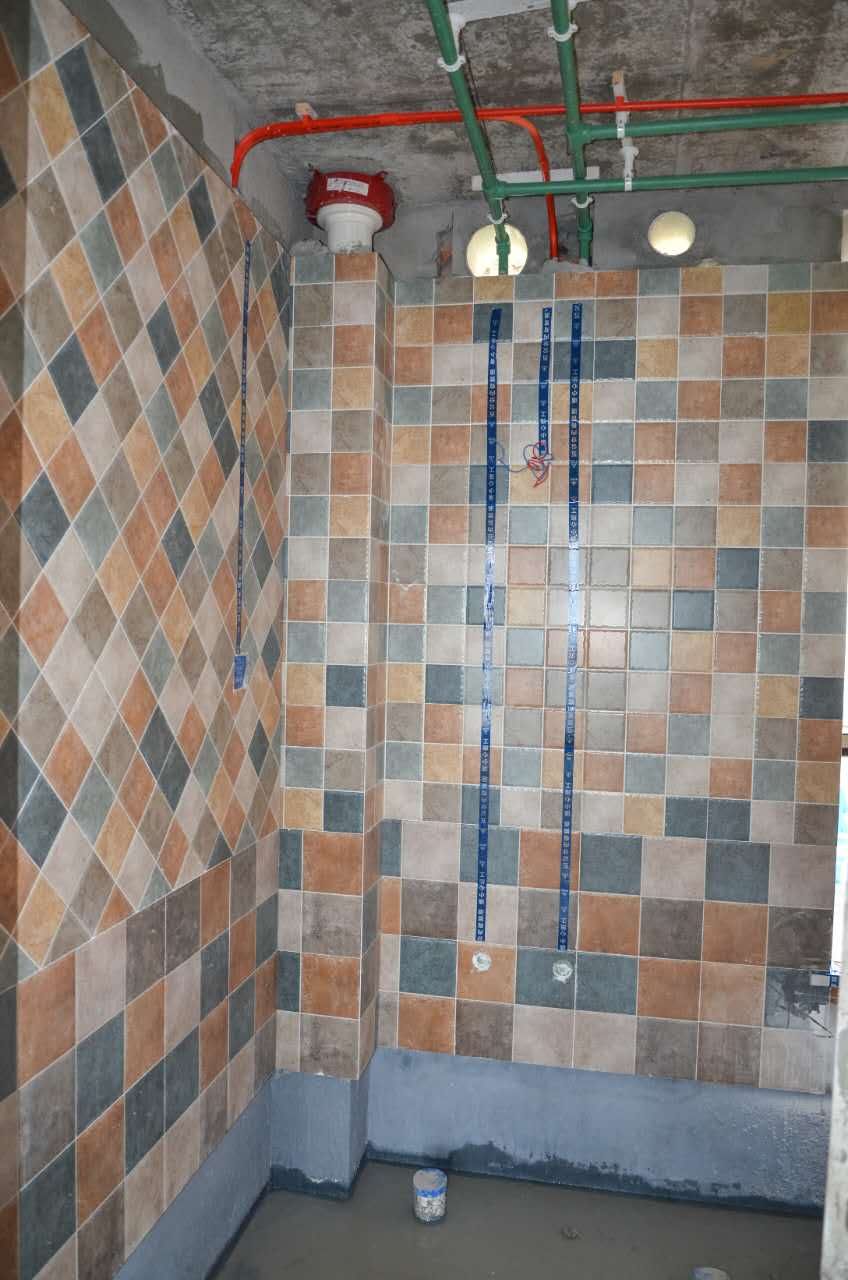 3、在貼瓷磚之前,地漏、淋浴房和擋水條需要預埋。