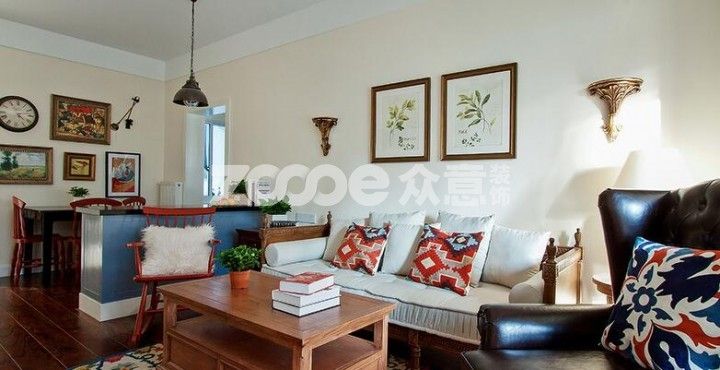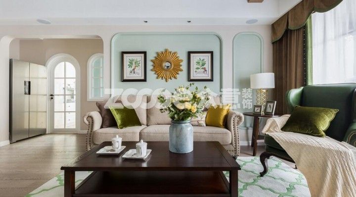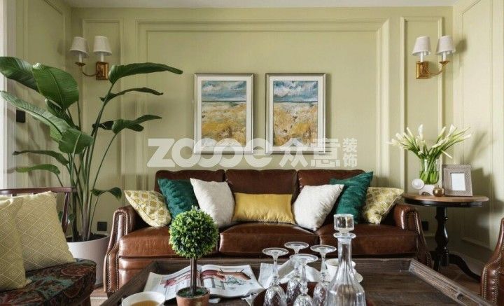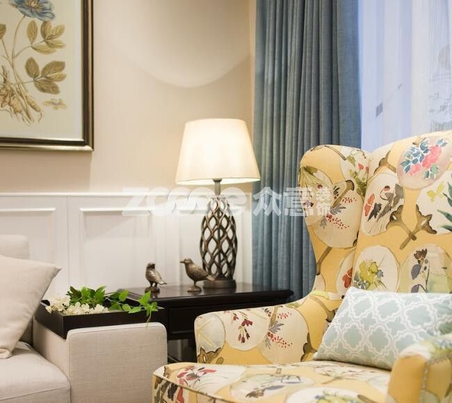 北歐風格常常為了凸顯空曠,刷白墻后全無墻面裝飾。但是美式風格卻恰恰相反,即便是刷了黃色的墻漆,按照傳統,還是需要在墻面進行裝飾的。比如花鳥、植物類的裝飾畫,裝飾壁燈等等。