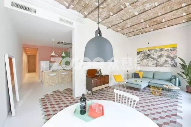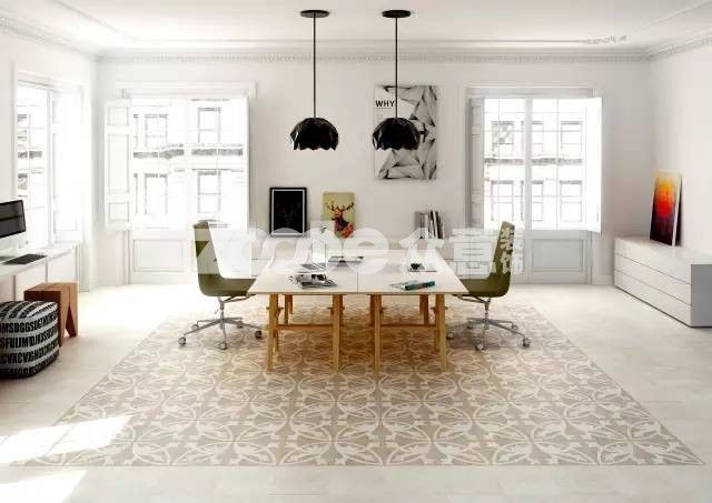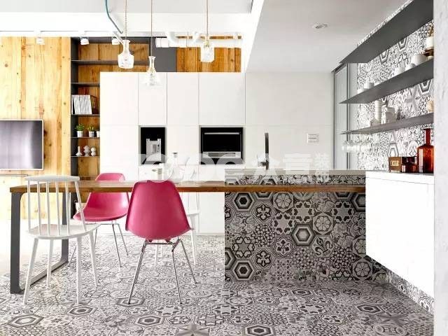 六邊形和四邊形這種幾何磚作地毯式鋪貼,不但造型更多變而且可以利用色彩間的對(duì)比,隨心所欲地搭配出自由隨性的空間裝扮。