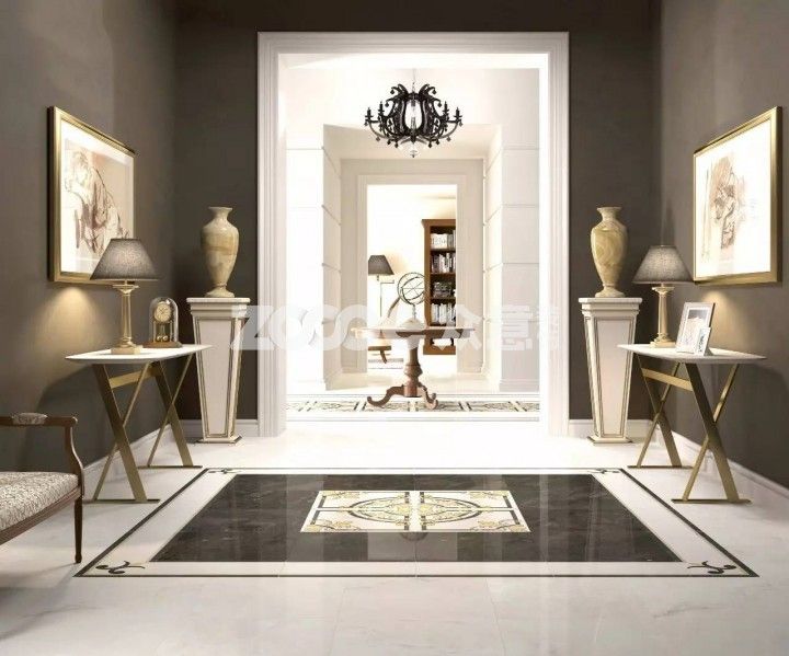 對(duì)于重度懶癌患者,可以選擇擁有不同尺寸及花紋的套裝式瓷磚,利用波打線和花磚輕松打造貴氣的地毯式造型。