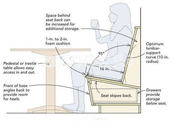 考慮到人體舒適度,卡座沙發(fā)的坐面與沙發(fā)的靠背之間的角度盡量保持在95度,這種狀態(tài)下的人體是向后傾斜的,會(huì)處于一種舒適的狀態(tài)。但是在國(guó)內(nèi)并不都多見(jiàn)。