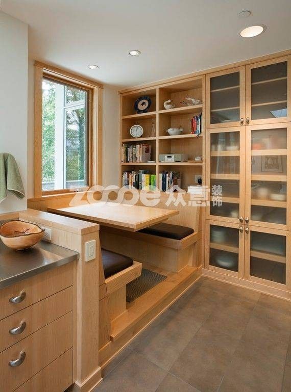 卡座在餐廳和咖啡館得到了極大的利用,面對(duì)面這種用餐方式得到大家的認(rèn)可。于是,居家中也開(kāi)始出現(xiàn)卡座,一般用于家庭用餐的卡座桌子多為長(zhǎng)方形,因?yàn)檫@樣方便家人用餐。畢竟,要把那么多的碗筷擺上來(lái),桌子的尺寸不大點(diǎn)不行啊!