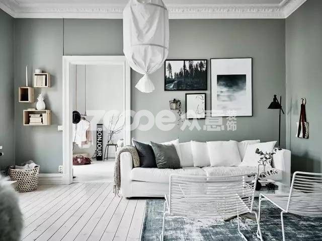 黑白灰在色彩體系中可以視為“消失狀態”,墻色、天花和大面積軟裝選擇黑白灰作為大基底,也就相當于創造了一個空白的畫布,這時候你再往里面填充任何東西都錯不到哪里去。