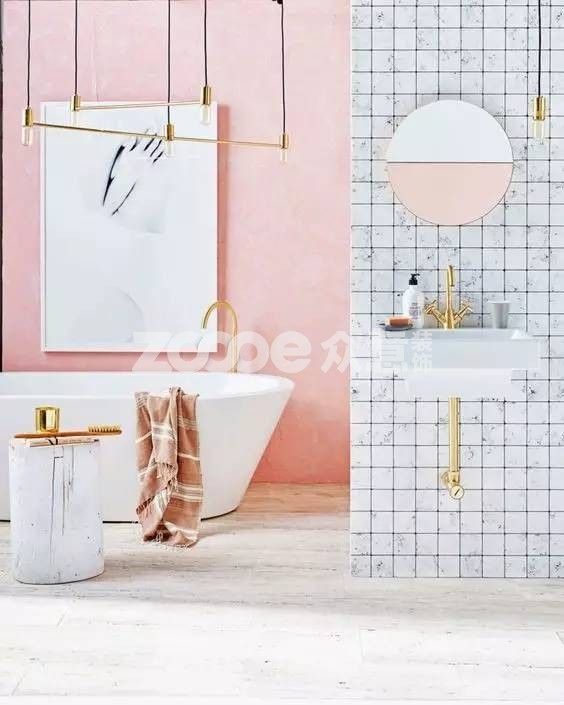 ▲拿這張圖來說,淡淡的橘粉色墻面,配上稍微深一級的抱枕和地毯,再加洋氣的Grasshopper落地燈來添彩,形成了有層次的暖色過渡,是一種不單調的和諧感。