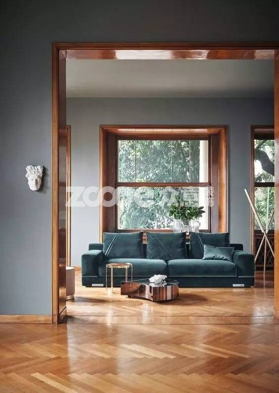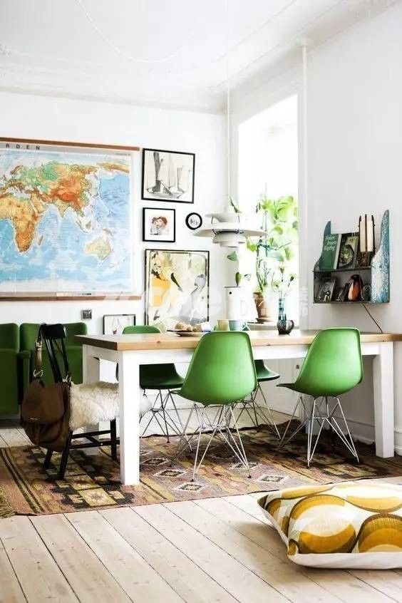 ▲另外一個例子,今年的流行色草綠,運用在家居環境中是不是很有腔調?墻面、框畫、抱枕、地毯都維持了同一個色彩體系,才能達成整體氛圍清新又平和的效果。