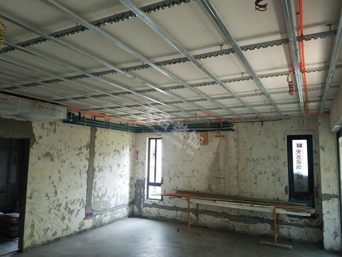 天古渝派精工·輕鋼龍骨吊頂工藝:平頂及直線造型頂。主龍骨、副龍骨、邊龍骨全部采用鍍鋅輕鋼材質(zhì),使用沉頭螺絲錨固。主龍骨要求間距900㎜,次龍骨要求間距400㎜ 。