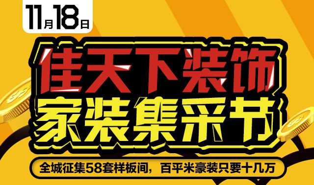 11月18日,佳天下裝飾“家裝集采節”即將拉開帷幕!匯集30多家大牌家具廠家,78家一線主材廠家,四大品牌電器,整個家居裝修需要的各環節均在其中,齊聚佳天下裝飾(江北黃泥磅店及九龍坡楊家坪店)。業主們可以進行裝修材料集中采購,所有參與家裝集采節的主材、輔材、家具,電器全部零利潤廠價供應,消費者享有超大超大自主選擇空間。