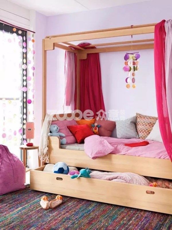 你家的床底都放了什么?因為容易落灰,恐怕大家的床下面只放了各種紙盒和行李箱。把床設計成地臺床就不用擔心落灰啦,這樣孩子的玩具、衣服等也有了放的地方。