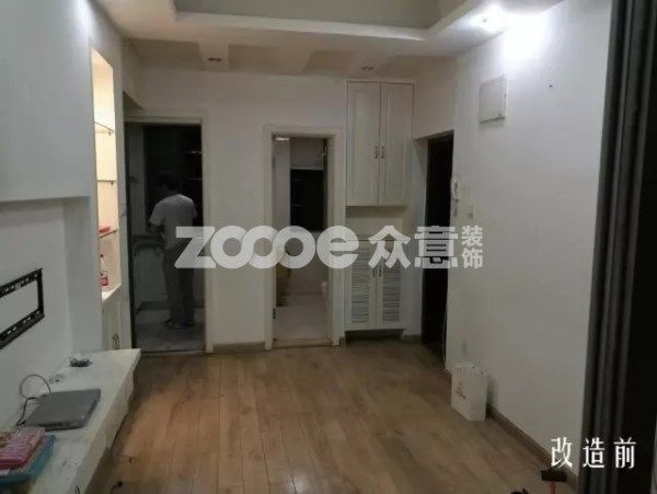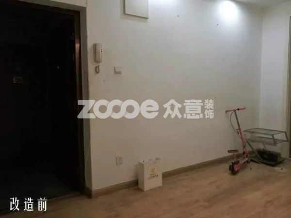 改造后,設計師對整體的墻面進行了換色,縮短了原先的電視柜隔板,移動了掛機的位子。刷新了家具器和地板。