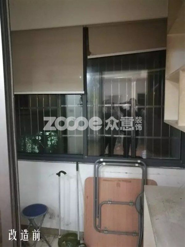 改造前,原先的餐廳部分,兩側分別做了柜體,但都是高柜,實際使用很困難,而且并不舒適,擁擠和狹窄。原先柜體的晾衣功能,尺寸不夠且極不方便,水漬容易濺到墻上,使墻體發霉和變黑。