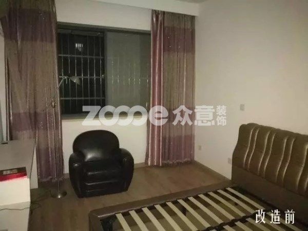 改造前的臥室,厚重的皮沙發,泛黃的墻面以及昏暗的燈光照明。