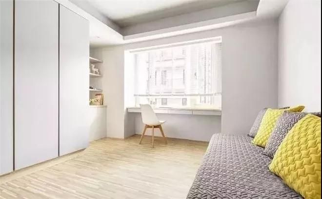 飄窗處搭配上凳子,可秒變書桌,靠在窗臺看書,想想都愜意美好。