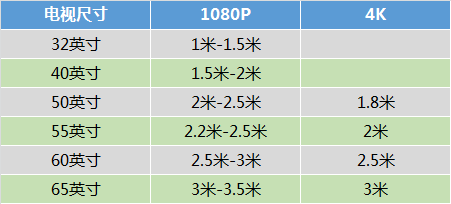 照此公式,我們可以大概估算出目前主流電視尺寸的觀賞距離