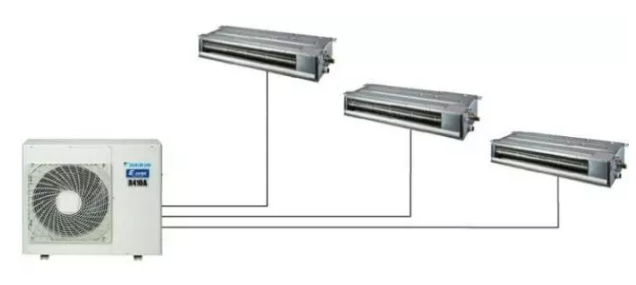 在外觀上,中央空調(diào)只需要一臺室外機,即可連接多臺內(nèi)機,又稱為【一拖N】。例如,兩房兩廳的小戶型,需要三臺室內(nèi)機,即一拖三。(不建議在廚房安裝,油煙大,容易影響運行和使用壽命)