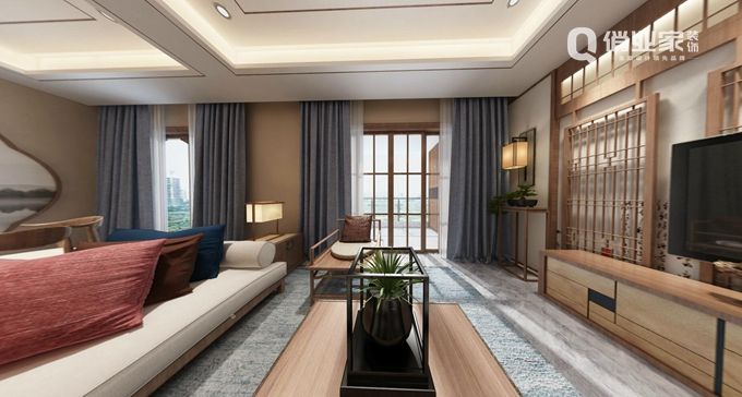 2、新中式風格:新中式風格的家裝則會運用壁紙、玻化磚等材質做墻面和地面的處理,而在裝飾方面則是搭配飽和度略高的紅、黃、藍、綠等色作為局部色彩。