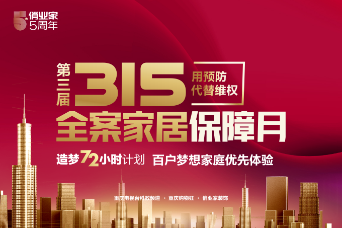 3月,重慶俏業家裝飾、重慶電視臺科教頻道、重慶購物狂聯合主辦的【第三屆315全案保障月——造夢“72小時”計劃】全面啟動,限量征集100戶夢想家庭優享造夢計劃。