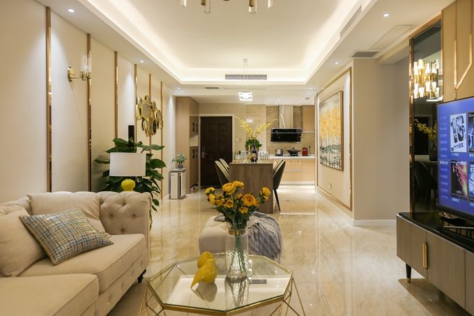 香檳色的金屬線條勾勒幾何造型,以簡(jiǎn)約經(jīng)典詮釋時(shí)尚生活。局部的細(xì)節(jié)裝飾也讓空間多了一絲奢華氣息。