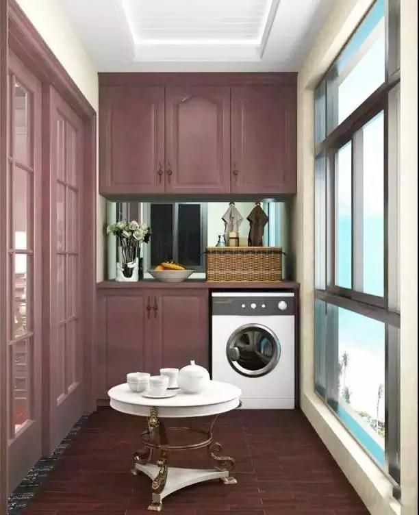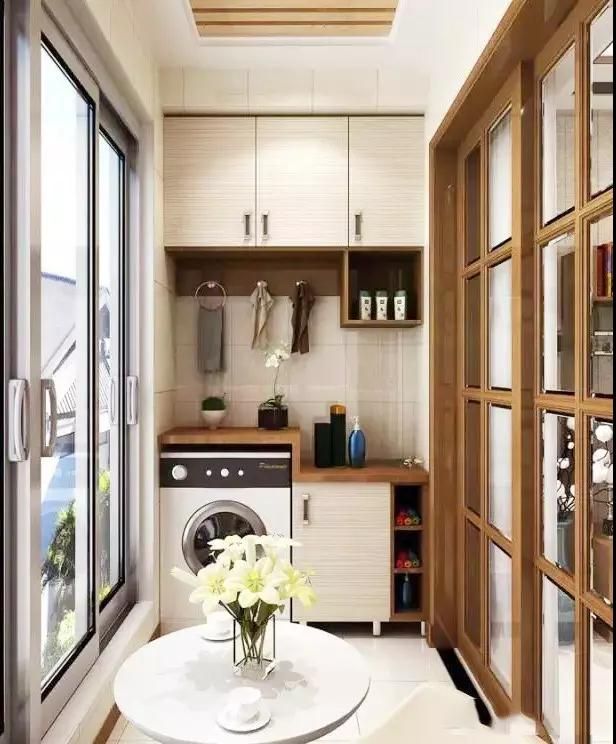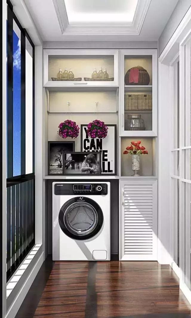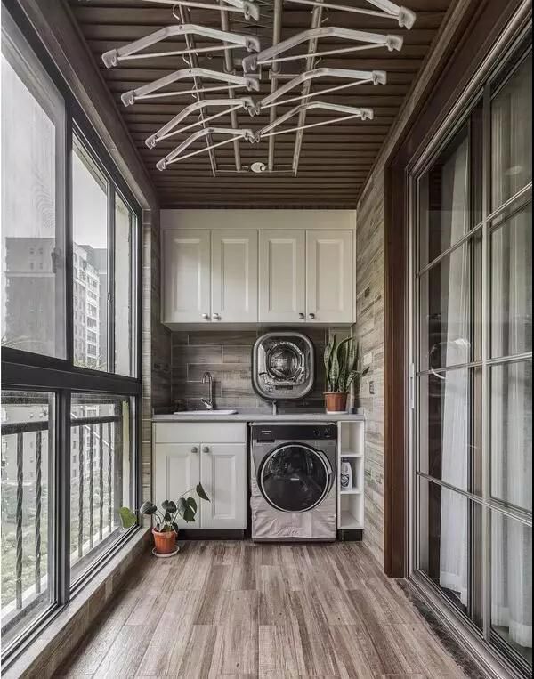 衛生間面積不夠,或者覺得陽臺放洗衣機比較方便的小伙伴 ,也可以考慮把洗衣機放陽臺,這樣洗完直接晾曬。