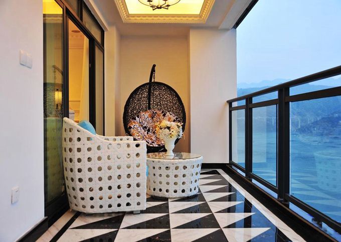 這是比較常見的陽臺改造方式,最大的優點就是能夠親近自然,呼吸新鮮空氣。獨自一人時躺在藤椅上安然歇息;有朋友來訪時還能一起品茶聊天,好不愜意。