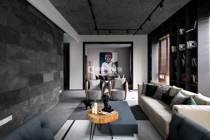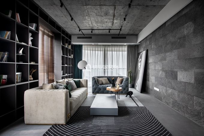 1、客廳裝修:頂面保留了喜馬拉雅建筑的原始頂,粗獷之余又帶有loft的自由和前衛。地面則采用的是啞光水泥漆,質樸的效果與頂面的樣式和諧統一。大氣簡約的硬裝造型伴隨著不同深淺的灰色充盈著整個空間,以中性的姿態給人絕對的都市時尚感!
