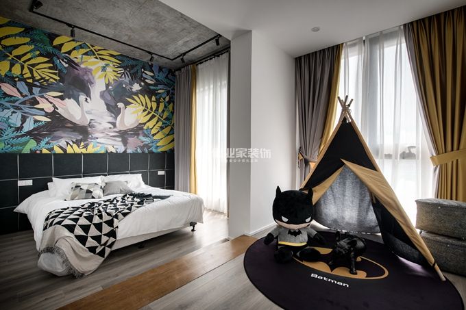 6、臥室套房4裝修:兒童房分為兩個功能區(休息+娛樂),二進空間既滿足小朋友的活力,又能滿足空間設計感,而且用色青春亮麗,獲得了更為簡約高級的視覺效果。